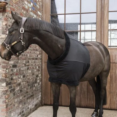 Onze borstbescherming is ideaal voor paarden die gemakkelijk wrijfplekken krijgen op drukpunten. De borstbescherming wordt gebruikt onder een staldeken, onderdeken of regendeken om schuren te voorkomen. Het is gemakkelijk om de bescherming aan te trekken, je hoeft de Borstbescherming alleen maar over de hals van het paard te schuiven en de klittenbandsluiting achter de voorbenen te sluiten.