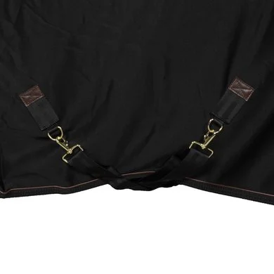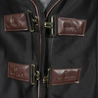 Het Kentucky Horsewear Cooler Fleece Rugis het ideale deken om te gebruiken na de training of het wassen van je paard. Deze deken absorbeert het zweet of water en houdt je paard warm tijdens het droogproces. Het heeft twee afneembare kruissingels langs debinnenzijde van het deken zodat het ook kan gebruikt worden als showdeken. De klassevolle artificieel lederen bies, het artificiële wol op de schoft en de elegante dubbele borstsluiting zorgen voor een luxueuze look. Achteraan zijn twee D-ringen bevestigden een nylon touwtje dat onder de staart doorgaat om het deken op zijn plaats te houden. Het deken mag gewassen worden in de wasmachine op 30°, geen droger.