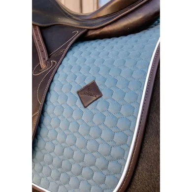 Ons Classic Leather zadeldoek is een zeer stijlvol zadeldoek met een kunstlederen band en ons bekende Kentucky-logo. Deze mooie kleuren passen bij al onze andere klassieke producten. De Hexagon quilting zorgt voor een elegante uitstraling die tijdloos is.