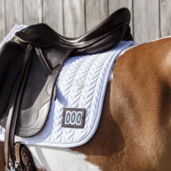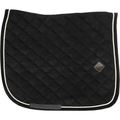 Onze zadeldoek Corduroy is gemaakt voor dressuuren biedt een zeer aangename scheiding tussen de rug van het paard en het zadel en beschermt het paard tegen mogelijke wrijving. Deze zadeldoek heeft een zeer stijlvolle look door het mooie ribfluweel materiaal in combinatie met gedraaide bies en diamanten stiksel. De zadeldoek heeft geen vervelende bandjes om aan het zadel vast te maken, enkel een lus voor de singel. Het Kentucky logo is subtiel aangebracht in de vorm van een lederen ruitje dat nog voldoende ruimte biedt om een eigen logo te borduren. De zadeldoek is machine wasbaar op 30°, geen droger.-Aangename scheiding tussen rug en zadel-Enkel riem voor singel-Subtiel artificieel lederen logo-Ruimte om de borduren