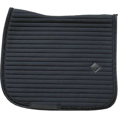 Onze zadeldoek Pearlsbiedt een zeer aangename scheiding tussen de rug van het paard en het zadel en beschermt het paard tegen mogelijke wrijving. De zadeldoek heeft een horizontale quilting en is gemaakt van ademend materiaal (43% Nylon, 43% Polyester and 14% Spandex). De verbazend mooie bies gemaakt van parels is een echte eye-catcher! Deze zadeldoek in combinatie met een van onze oornetjes met parels is buitengewoon prachtig! De zadeldoek heeft geen vervelende bandjes om aan het zadel vast te maken, enkel een lus voor de singel. Het Kentucky logo is subtiel aangebracht in de vorm van een lederen ruitje dat nog voldoende ruimte biedt om een eigen logo te borduren. Het is machine wasbaar op 30°, geen droger.