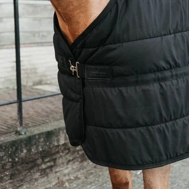 De buitenkant van het onderdeken is gemaakt van een polyester microvezel. Het garen in deze stof is opgeschuurd om een katoenachtig gevoel te geven. De voering van dit deken is gemaakt van onze populaire artificiële konijnenvacht. De artificiële konijnenvacht is enorm comfortabel voor je paard, vooral als hij net geschoren is of een gevoelige huid heeft. De voering creëert bovendien een extra isolerende laag die zorgt voor een glanzend effect van de paardenvacht. Voor de vulling gebruikten we 150g fiber fil vulling. Dit heeft dezelfde voordelen als dons maar, neemt in tegenstelling tot dons, geen geuren op.