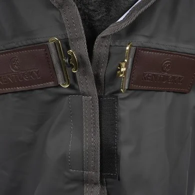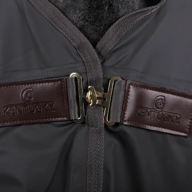 De Kentucky Rain Coat is een must have voor alle wedstrijdruiters om hun paard en duur materiaal te beschermen tegen regenbuien. Het is compact, zeer licht en 100% waterdicht! Makkelijk op te leggen over een ander deken of zadel wanneer de paarden gestapt moeten worden op regenachtige dagen. Het materiaal is 100% polyester met een PU coating aan de buitenzijde welke 100% waterdichtheid garandeert. Een klittenband sluiting is voorzien om het nekstuk vast te maken aan het hoofdstel of halster. Twee klittenband sluitingen aan de hals, een enkele borstsluiting, enkele buiksingel en een staarttouw helpen je deken op zijn plaats te houden. Wasbaar in de machine op 30°, maar kan niet in de droger.