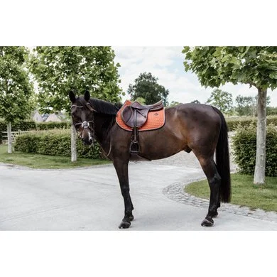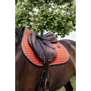 De buitenkant van dit zadeldoek is gemaakt van een katoenachtig polyester in een elegant Hexagon quilting design. De voering van het zadeldek Classic Leather is van 100% polyester. Dit materiaal is zacht voor de huid van het paard om schurenplekken te voorkomen.