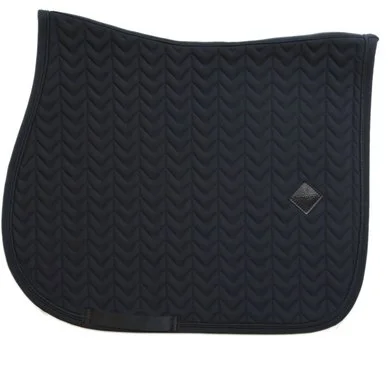 Onze veelzijdigheid zadeldoek Fishbone heeft de ideale vorm voor jumping, zorgt voor een schokabsorberend effect tussen de rug van het paard en het zadel en voorkomt wrijving. Dit dekje heeft het unieke visgraat motiefen is gemaakt uit zeer ademend materiaal (43% nylon, 43% polyester en 14% spandex). Dankzij de goede pasvorm is er geen nood aan lus vooraan om het dekje aan het zadel vast te maken, wel een nylon riem voor de singel. De fishbone zadeldoek heeft een subtiel lederen logo in dezelfde kleur als het dekje maar tegelijk ook nog voldoende ruimte om te borduren.Wasbaar op30°, geen droger.