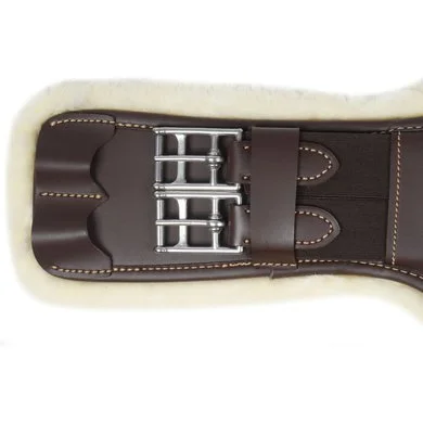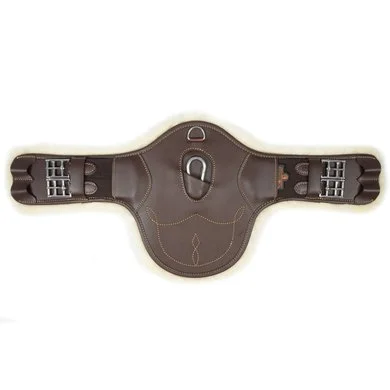 De Sheepskin Short Stud Girth is anatomisch gevormd en biedt comfort en bescherming tijdens het springen.De wijde buiklap beschermt de buik van het paard tegen de hoefijzers of kalkoenen tijdens het springen. De artificiële wollen voering wordt vastgemaakt aan de binnenzijde van de singel aan de hand van een stevigklittenband. Deze voering geeft een zeer aangenaam gevoel en is uiterst geschikt voor paarden met een gevoelige huid.De singel is gevuld met schokabsorberend EVA-schuim en is aan beide zijden uitgerust met driedubbele elastiek, alsook heeft deze eenD-ringom hulpteugels aan vast te maken. Er werd eveneens een karabijnhaak voorzien om de borstriem aan vast te maken. De singel is gemaakt van artificieel leder waardoor deze zeer gemakkelijk te onderhouden is, geen zweet opneemt en dus geen barsten vertoont of verkleurt. De Buiklapsingel kan worden schoongemaakt met onze Kentucky Horsewear Tack Cleaner. Deze werd speciaal ontwikkeld om artificieel leder proper te maken. Uiterst gemakkelijk en efficiënt! Wasbaar in de wasmachine op 30°.