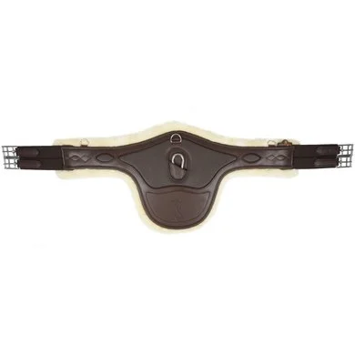 De Sheepskin Stud GirthSpecial heeft een pvc “basketbal” ontwerp dat het een zeer originele en andere look geeft. De wijde buiklap beschermt de buik van het paard tegen de hoefijzers of kalkoenen tijdens het springen. De Kentucky Horsewear buiklapsingel is anatomisch gevormd enbiedt comfort en bescherming tijdens het springen. De artificiële wollen voering wordt vastgemaakt aan de binnenzijde van de singel aan de hand van een stevigklittenband. Deze voering geeft een zeer aangenaam gevoel en is uiterst geschikt voor paarden met een gevoelige huid. De singel is gevuld met schokabsorberend EVA-schuim en is aan beide zijden uitgerust met driedubbele elastiek, alsook heeft deze drie D-ringen om hulpteugels aan vast te maken. Er werd eveneens een karabijnhaak voorzien om de borstriem aan vast te maken. De singel is gemaakt van artificieel leder waardoor deze zeer gemakkelijk te onderhouden is, geen zweet opneemt en dus geen barsten vertoont of verkleurt. De Buiklapsingel kan worden schoongemaakt met onze Kentucky Horsewear Tack Cleaner. Deze werd speciaal ontwikkeld om artificieel leder proper te maken. Uiterst gemakkelijk en efficiënt! Wasbaar in de wasmachine op 30°.