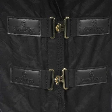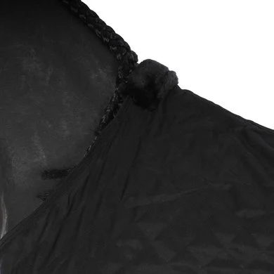 Het staldeken heeft een vulling van 0g en de binnenzijde is gevoerd met artificieel konijnenvacht voor een ultra zacht gevoel en voorkomt dat er haartjes in de voering blijven zitten. Dankzij deze voering zijn schuurplekken op de borst of schouders verleden tijd. De artificiële konijnenvacht (100% diervriendelijk) maakt kleine luchtzakjes aan die de lichaamswarmte van het paard gaat opvangen en behouden. De zachte haartjes van de artificiële konijnenvacht zorgt voor een betere glans van de paardenvacht. Dankzij de hoge warmte-tot-gewicht ratio biedt dit deken een maximaal comfort. Ook de artificiële wol ter hoogte van de schoft zorgt voor een aangenaam gevoel en vermijdt schuurplekken. Het wafelmotief aan de buitenzijde zorgt ervoor dat de paarden het deken zeer moeilijk kunnen stukbijten. De buitenstof is gemaakt van 600D high tenacity polyester. Vooraan wordt het deken gesloten door middel van 2 simpele verstelbare borstsluitingen die zorgvuldig met imitatieleder werden afgewerkt. De twee kruissingels zijn eveneens verstelbaar en met leder afgewerkt. De bilsluiting bestaat uit een dikke elastiek met een plastic omhulsel waardoor deze zeer gemakkelijk af te wassen is. Aan beide zijden werd een gesp geplaatst waardoor men de bilsluiting vlot kan afnemen. Wasbaar in de machine op 30°, geen droger.