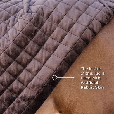 Het staldeken is anatomisch gevormd en sluit met 2 sterke borstsluitingen en 2 kruissingels gemaakt van autogordel materiaal. Dankzij de artificiële konijnenvacht schuift het deken altijd terug op zijn plaats. Voor extra bescherming aan de schoft is het schoftgedeelte voorzien van artificiële wol.