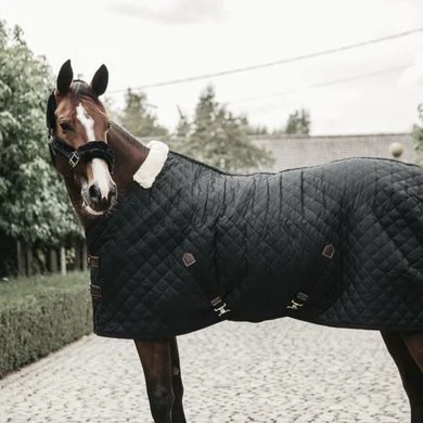 Het staldeken heeft een vulling van 400g en de binnenzijde is gevoerd met artificieel konijnenvacht voor een ultra zacht gevoel en voorkomt dat er haartjes in de voering blijven zitten. Dankzij deze voering zijn schuurplekken op de borst of schouders verleden tijd. De artificiële konijnenvacht(100% diervriendelijk) maakt kleine luchtzakjes aan die de lichaamswarmte van het paard gaat opvangen en behouden. De zachte haartjes van de artificiële konijnenvacht zorgt voor een betere glans van de paardenvacht. Dankzij de hoge warmte-tot-gewicht ratio biedt dit deken een maximaal comfort. Ook de artificiële wol ter hoogte van de schoft zorgt voor een aangenaam gevoel en vermijdt schuurplekken. Het wafelmotief aan de buitenzijde zorgt ervoor dat de paarden het deken zeer moeilijk kunnen stukbijten. De buitenstof is gemaakt van 600D high tenacity polyester. Vooraan wordt het deken gesloten door middel van 2 simpele verstelbare borstsluitingen die zorgvuldig met imitatieleder werden afgewerkt. De twee kruissingels zijn eveneens verstelbaar en met leder afgewerkt. De bilsluiting bestaat uit een dikke elastiek met een plastic omhulsel waardoor deze zeer gemakkelijk af te wassen is. Aan beide zijden werd een