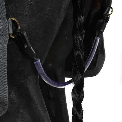 - Twee borstsluitingen, twee kruissingels, elastische, afneembare bilsluiting met plastic huls en staartflap
