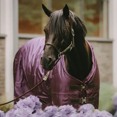 De buitenstof van het deken heeft een canvas look van 1680D polyester. De buitenkant is daarom erg sterk, duurzaam en vuilafstotend. Je paard zal altijd droog blijven dankzij de PU waterdichte coating (ISO 10.000mm). De 160 grams vulling is PES-fiber fill, dit materiaal is warm en ademend dankzij de meerdere lagen waarin de lucht kan circuleren. De binnenkant van het deken is gevoerd met onze bekende artificiële konijnenvacht. De voering vermijdt schuurplekken en werkt al een extra isolerende laag, naast de fiber fill.