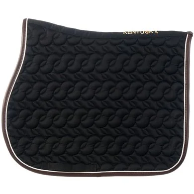 Onze zadeldoek biedt een zeer aangename scheiding tussen de rug van het paard en het zadel en beschermt het paard tegen mogelijke wrijving. Dankzij het speciale design en originele patroon wordt onze zadeldoek gebruikt voor zowel jumping als dressuur en eventing. De zadeldoek heeft geen vervelende bandjes om aan het zadel vast te maken, enkel een lus voor de singel. Het artificieel lederen boortje zorgt ervoor dat de zadeldoek klasse uitstraalt. De zadeldoek is machine wasbaar op 30°, geen droger.