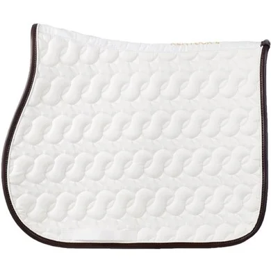 Onze zadeldoek biedt een zeer aangename scheiding tussen de rug van het paard en het zadel en beschermt het paard tegen mogelijke wrijving. Dankzij het speciale design en originele patroon wordt onze zadeldoek gebruikt voor zowel jumping als dressuur en eventing. De zadeldoek heeft geen vervelende bandjes om aan het zadel vast te maken, enkel een lus voor de singel. Het artificieel lederen boortje zorgt ervoor dat de zadeldoek klasse uitstraalt. De zadeldoek is machine wasbaar op 30°, geen droger.